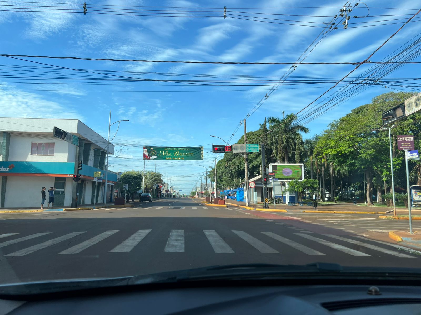 Foto tirada da principal avenida de Rio Brilhante revela a paz e tranquilidade de uma linda cidade do interior de MS neste domingo de manha 07/12
