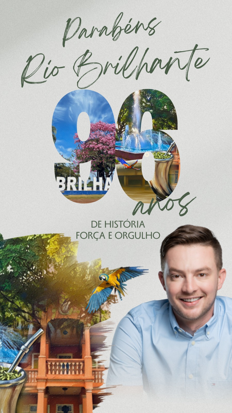 Há 96 anos nossa cidade foi fundada e, assim como o Brasil, já enfrentou momentos de crise. Mas acreditamos que, com coragem e esperança, vamos superar os desafios e seguir em frente de cabeça erguida.
